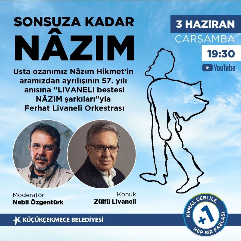 Vefat edişinin 57. yılında Nazım Hikmet anısına Zülfü Livaneli’nin efsane bestesi ‘Karlı Kayın Ormanı’ Ferhat Livaneli Orkestrası tarafından yeniden yorumlanarak, Küçükçekmecem TV’de izleyiciyle buluşuyor. Programda, şairin şiirlerinden bestelere imza atarak ‘Biz Nazım’dan aldık bu eli’ diyen Zülfü Livaneli, unutulmaz şiirleri ile Türkiye’nin ve dünyanın önemli şairlerinden olan Nazım Hikmet’in yaşamından anekdotlar anlatacak.