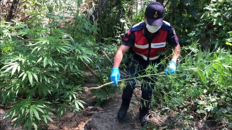 Manisa’nın Salihli ilçesinde Gediz Nehri’ndeki bir adacıkta Hint keneviri yetiştirildiği ortaya çıktı. Jandarma ekiplerinin drone destekli gerçekleştirdiği operasyonda 97 kök Hint keneviri ele geçirildi.