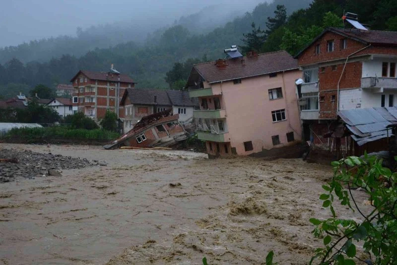 Karabük’ün Yenice ilçesinde bulunan bir köyde sağanağın nehri taşırması neticesinde 4 katlı bir bina yıkılırken bitişiğindeki bina ise zeminin kaymasıyla yan yattı. Yıkılan binada yaşayan vatandaşlar yaşlı gözlerle yaşadıkları dehşeti anlattı.
