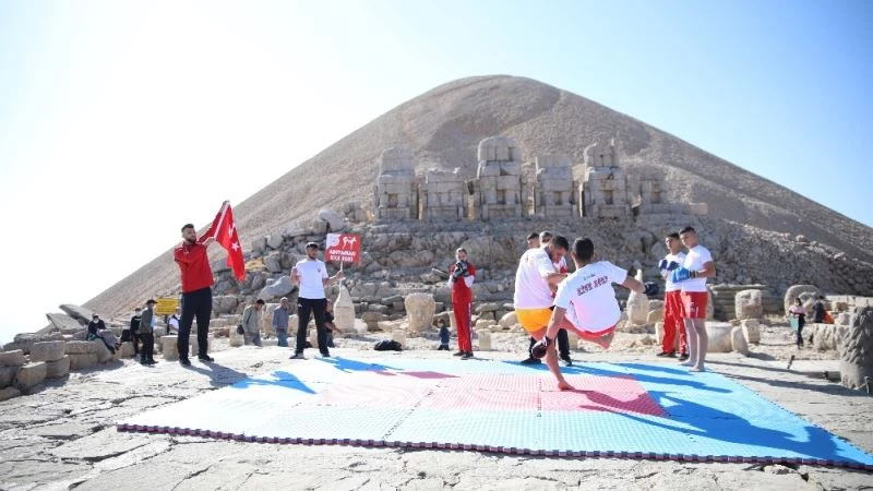 Dünyanın 8. Harikası olarak bilinen, UNESCO tarafından Dünya Kültür Mirasları arasında yer alan, 2 bin 206 metre yükseklikteki Nemrut Dağı zirvesinde Adıyaman Gençlik ve Spor İl Müdürlüğü’ne bağlı kick boksçular etkinlik düzenledi.