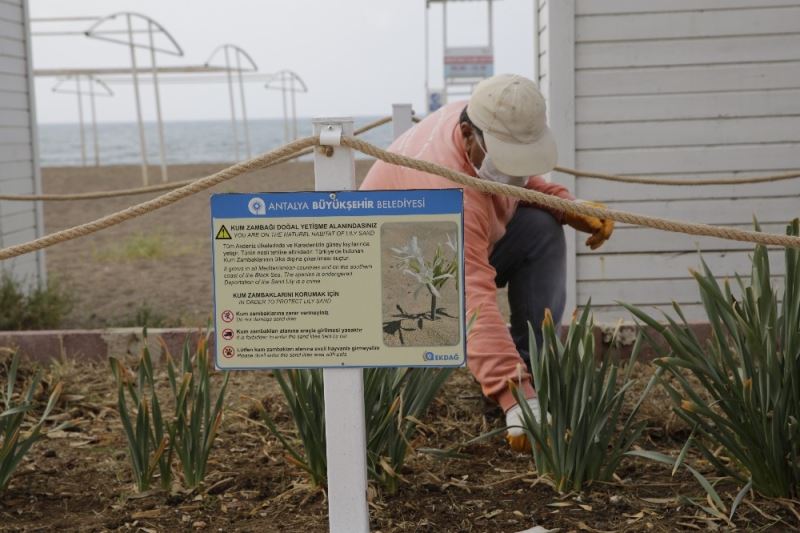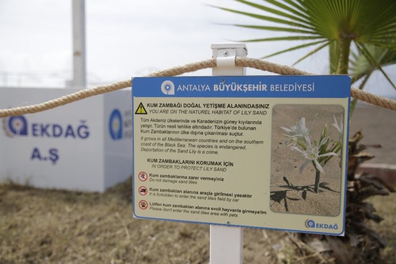 Antalya Büyükşehir Belediyesi nesli tükenme tehlikesi altında olan bitkiler arasında bulunan kum zambaklarını, doğal yaşam alanı olan Lara sahilinde koruma altına aldı.