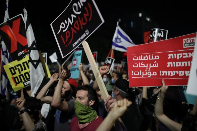 İsrail’de yüzlerce kişi Başbakan Binyamin Netanyahu’nun konutunun önündeki eylemlerine devam ediyor.