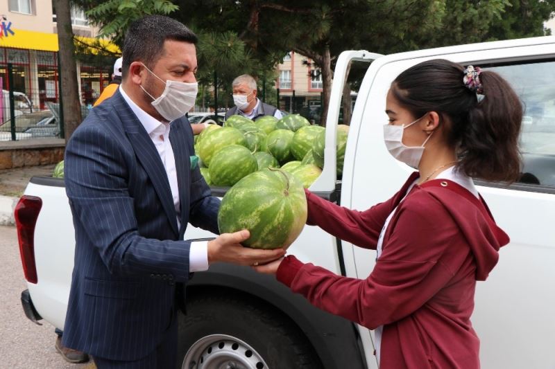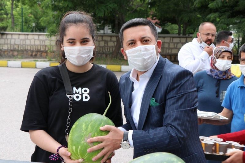 Nevşehir Belediye Başkanı Rasim Arı’nın karpuz dağıtmasından dolayı öğrenciler ise teşekkür etti.
