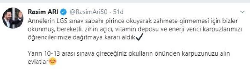 Nevşehir Belediye Başkanı Arı, LGS’ye girecek öğrencilere karpuz ikram edecek