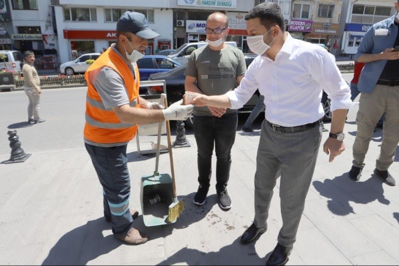 Nevşehir Belediye Başkanı Rasim Arı, Cuma namazı sonrasında vatandaşlara maske dağıtarak şerbet ikramında bulundu.