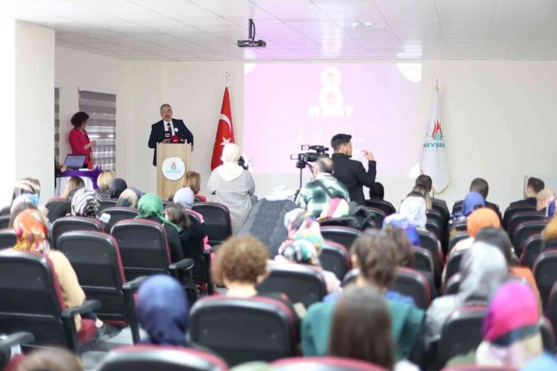 8 Mart Dünya Kadınlar Günü, Nevşehir Belediyesi Kadın ve Aile Hizmetleri Müdürlüğü tarafından düzenlenen programla kutlandı. Programa Vali İnci Sezer Becel’in yanı sıra Belediye Başkanı Dr. Mehmet Savran ve eşi Nejla Savran, Nevşehir İl Jandarma Alay Komutanı J. Kd. Albay Bahittin Murat Yakın, AK Parti İl Başkanı Ali Kemikkıran, Merkez İlçe Başkanı Ferit Yiğitarslan, Kadın Kolları Başkanı Ayşe Bilgiç, Gençlik Kolları Başkanı Haluk Köybaşı, Belediye Başkan Yardımcıları Mustafa Alevli ve Furkan Feralan, daire müdürleri, protokol üyeleri, sivil toplum kuruluşu temsilcileri ve kadınlar katıldı. Programın açılışında konuşan Nevşehir Belediyesi Aile Danışma Merkezi’nde görevli Psikolog İlayda Altun İçen, toplumsal cinsiyet eşitliği ve kadın hakları konusunda bilgiler verdi. Belediye Başkanı Dr. Mehmet Savran ise konuşmasında, toplumun en etkili, yönlendirici, birleştirici ve koruyucu unsuru olan kadınların haklarının konuşulması açısından bu günü çok önemsediğini belirtti. Kadınların, yaşamın her anında yanımızda olan, bizleri dünyaya getiren, büyüten, yetiştiren, eğiten, sevgisi ile kuşatan ve şefkatli yürekleriyle bir an olsun bile bizleri yalnız bırakmayan, en değerli varlıklarımız olduğunu kaydeden Savran, aydın, umutlu, verimli, sağlıklı yarınlara ancak ve ancak kadınların üretimiyle ulaşılabileceğini vurguladı.