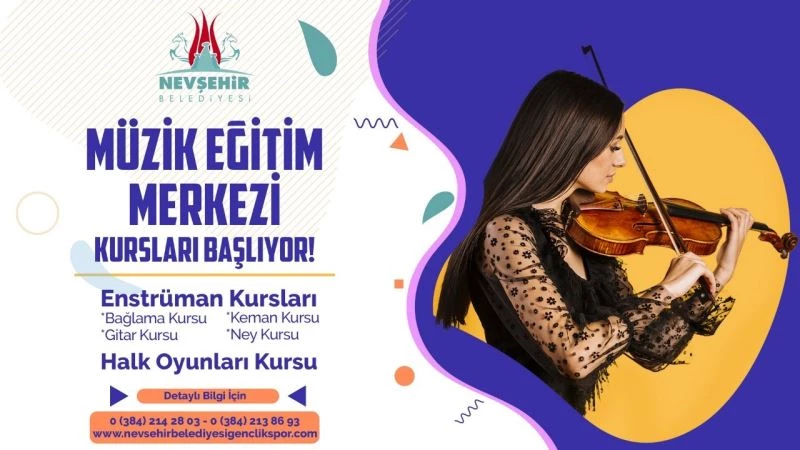 Nevşehir Belediyesi Müzik Eğitim Merkezi’nde açılacak olan Bağlama, Gitar, Keman, Ney ve Halk Oyunları kursları için kayıtlar başladı.
