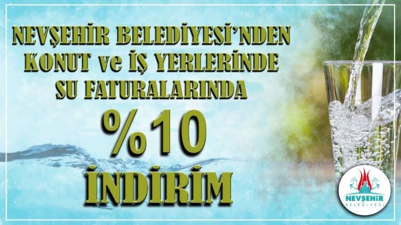 Nevşehir Belediyesinden su faturalarına yüzde 10 indirim