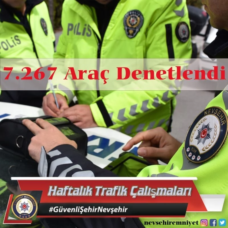 Nevşehir’de polis ekipleri tarafından son bir hafta içerisinde yapılan trafik uygulamalarında 7 bin 267 aracın sorgusu yapıldı.