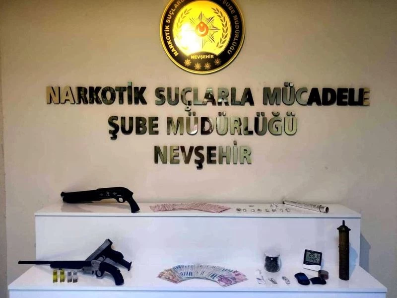 Edinilen bilgiye göre, İl Emniyet Müdürlüğü Narkotik Suçlarla Mücadele Şubesi ekipleri, Nevşehir’de uyuşturucu ticareti yapıldığı belirlenen adreslere eş zamanlı operasyon düzenledi. Narkotik köpeği ’Ateş’in de destek verdiği operasyonda, 25 şüpheli yakalanarak gözaltına alındı. Yapılan adli aramalarda ise, 28,94 gram sentetik uyuşturucu, 21,48 gram esrar, 6 uyuşturucu hap, 2 tüfek, tabanca, bu silahlara ait fişekler, esrar üretme ve öğütme aparatları, hassas terazi ile uyuşturucu satışından temin edildiği değerlendirilen 15 bin 10 lira ele geçirildi.