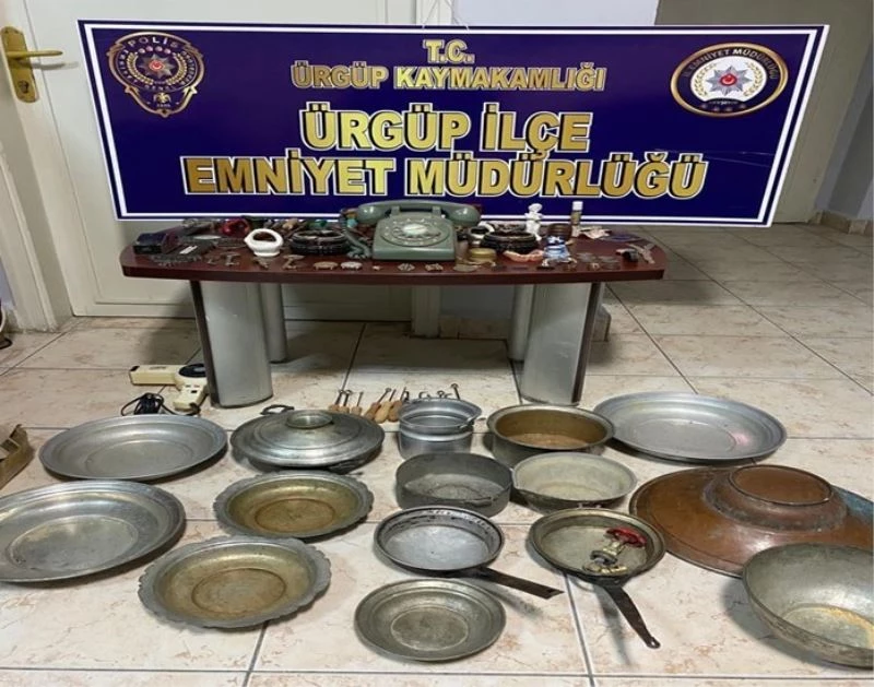 Hırsızın yakalanması için çalışma başlatan polis ekipleri, hırsızın çaldığı isim mühürü, bakır tabaklar, eski saat, para ve telefon gibi malzemeler ile birlikte yakalandı.