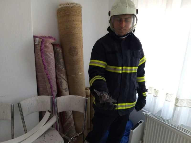 Nevşehir’de bir apartman dairesine giren yarasalar, Nevşehir Belediyesi İtfaiye Müdürlüğü ekipleri tarafından evden çıkartıldı.