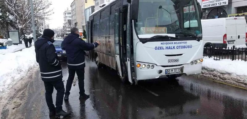 Nevşehir Belediyesi Zabıta Müdürlüğü ekipleri, özel halk otobüslerine yönelik denetim ve kontrollerini sürdürüyor.