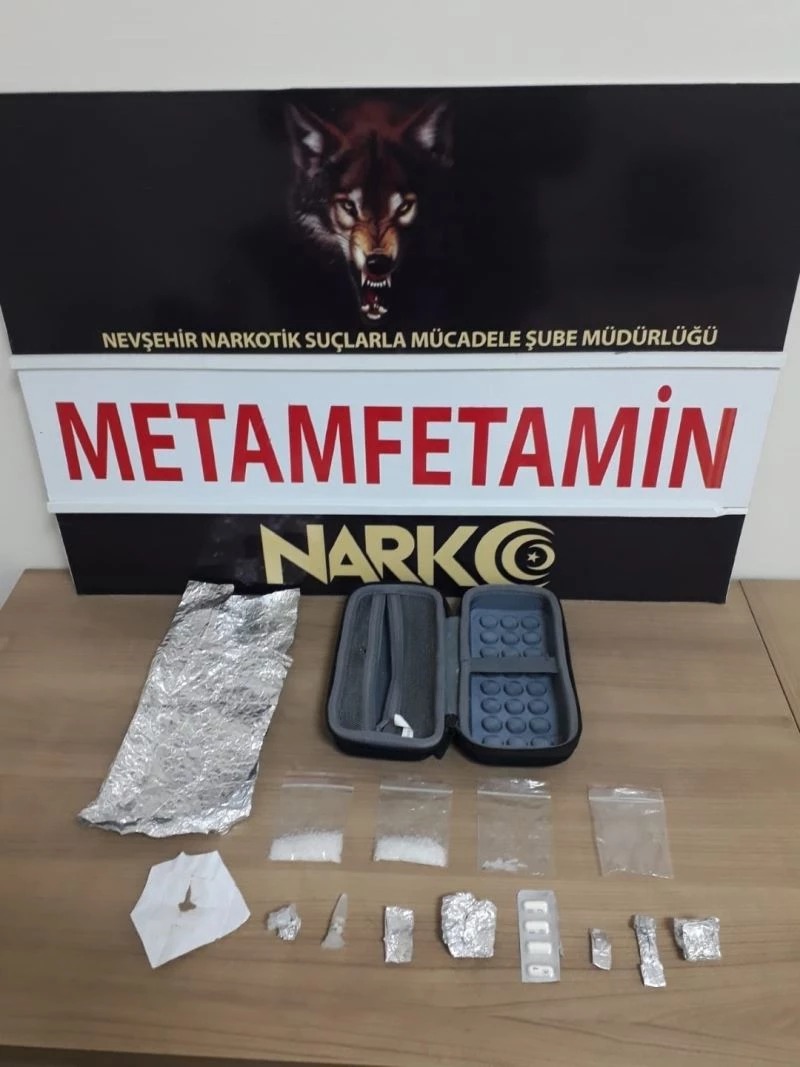 Nevşehir İl Emniyet Müdürlüğü Narkotik Şube Müdürlüğü ekipleri tarafından yapılan çalışmalarda, durumundan şüphelenilen Y.D.’nin üstünde yapılan aramada, 10 parça halinde 15.24 gram metamfetamin, 4 adet yeşil reçeteye tabi Lyrıca ibareli hap, 0.38 Gr Eroin, 0.64 Gr kubar esrar ele geçirildi. Ekipler tarafından uyuşturucu madde kullanan ve ticaretini yapan şahısların deşifresine yönelik yapılan sokak çalışması kapsamında; Ü.M., Y.Ç. M.Ö. ve M.Ö.’nün üzerinde arama yaptı. Yapılan aramada, 0.34 gram metamfetamin, 0.65 gram metamfetamin, 0.15 Gr metamfetamin ve 1.05 gram eroin ele geçirildi.