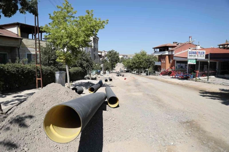 Nevşehir Belediyesi tarafından altyapısı yenilenen Dr. Sadık Ahmet Caddesi’nde yağmur suyu hattı döşeniyor.