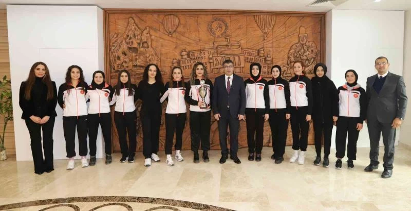 Takım oyuncuları ve Antrenör Parlakyıldız ise kendilerine vermiş oldukları desteklerinden dolayı Rektör Aktekin’e teşekkürlerini sunarak, şampiyonlukta elde ettikleri kupayı Rektör Aktekin’e takdim ettiler.