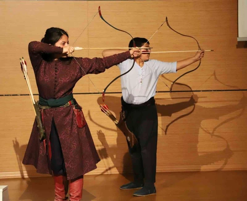 Geleneksel okçuluk konusunda Türklere özgü teknikler anlatılırken Gökbörü Spor Kulübü kıdemli kadın okçularından Vildan İsmet Genç ile çocuk okçularından Burak Akpınar anlatılan tekniklerin uygulamalı olarak gösterimini yaptılar.