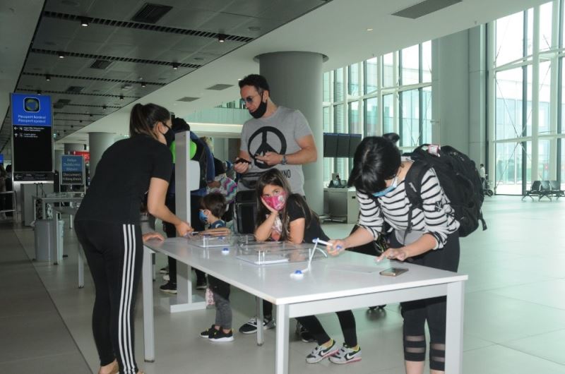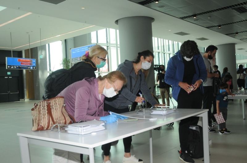 Yolcular, pasaport kontrolü öncesinde kendileri için hazırlanan sağlık, iletişim ve adres bilgilerinin yer aldığı formları da doldurdu. Daha sonra ABD’den dönen yolcular, pasaporttan geçerek yurda giriş yaptı.