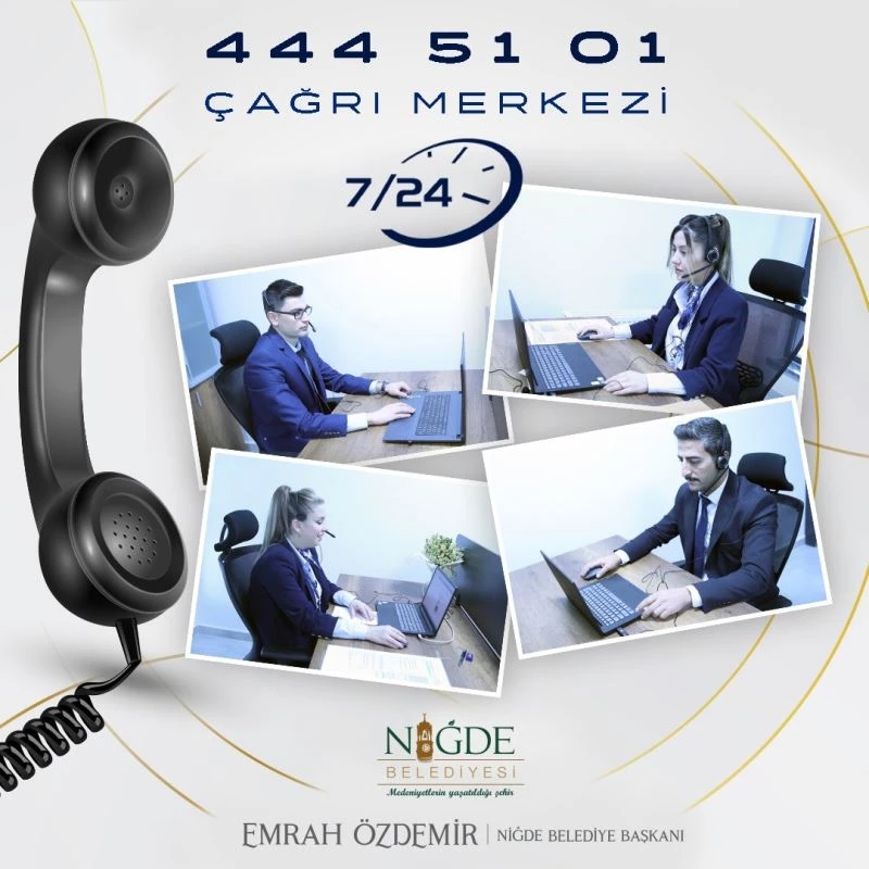 Yaptığı çalışmalarda ve hizmetlerde halkın memnuniyetini her zaman ön planda tutan Niğde Belediyesi vatandaşlara daha hızlı hizmet verebilmek için ‘Çağrı Merkezi’ hattını oluşturdu. Hizmet kalitesini arttırmak ve vatandaşların taleplerine anında çözüm üretip, tekrar geri dönüş sağlanması adına Niğde Belediyesi 444 51 01 hatlı çağrı merkezi vatandaşlara hizmet vermeye başladı.