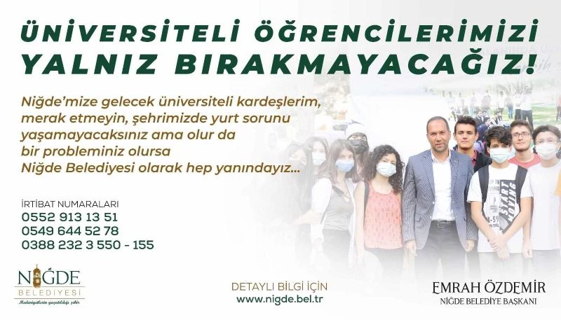 Niğde Belediye Başkanı Emrah Özdemir kente gelen ve kalacak yer bulamayan, ihtiyaç sahibi Üniversite öğrencilerinin barınma ihtiyacının karşılanmasına destek olacaklarını açıkladı.