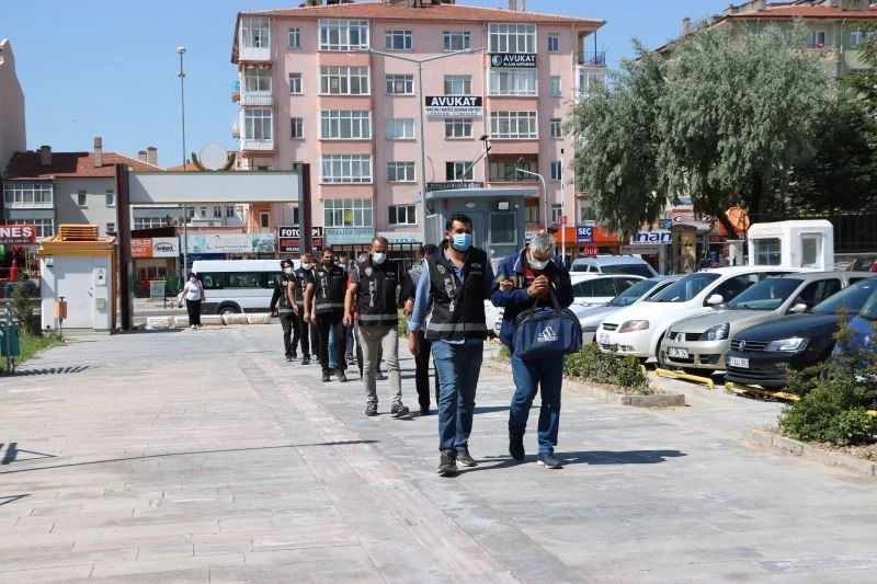 Niğde Cumhuriyet Başsavcılığı koordinesinde İl Emniyet Müdürlüğü Kaçakçılık ve Organize Suçlarla Mücadele ekipleri; çıkar amaçlı suç örgütü kurmak, örgüt faaliyetleri kapsamında nitelikli dolandırıcılık ve resmi belgede sahtecilik suçlarını işleyenlere yönelik yaptığı çalışmada Niğde merkezli Hatay, İstanbul, Mersin, Adana, Kayseri, Bursa, Ankara ve Konya’da belirlenen adreslere düzenlenen eş zamanlı operasyon düzenledi. Operasyonda 14 kişi gözaltına alınırken şüphelilerin adreslerinde yapılan aramalarda, dolandırıcılık olayında kullanılmak üzere 12 çek ve sözleşmeli vekaletname, paravan şirketlere ait 3 kaşe, sahte plaka, başka kişiler adına çıkarılmış 4 sim kart ve 14 cep telefonu ele geçirildi.