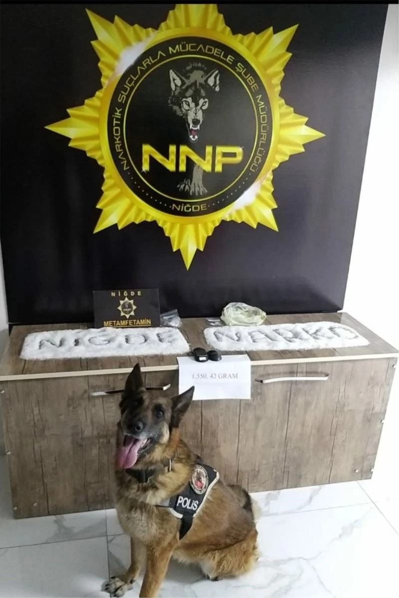 Niğde Emniyet Müdürlüğü Narkotik Suçlarla Mücadele Şube Müdürlüğü ekipleri Sokak Satıcılarına ve Kullanıcılarına yönelik yürütülen risk analizi çalışmaları sonucu uyuşturucu madde temin edeceği değerlendirilen 2 kişiyi gözaltına aldı. Şahısların ikamet ettiği yerde narkotik köpeği ile yapılan aramada 1 kilo 556,43 gram ağırlığında metamfetamin isimli uyuşturucu ele geçirildi.