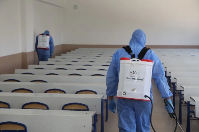 Kovid-19 salgını süresince hummalı bir çalışma sergileyen Niğde Belediyesi ekipleri, Yükseköğretim Kurumları Sınavı (YKS) Sınavı’nın yapılacağı okullarda detaylı bir dezenfekte çalışmasını geçtiğimiz günlerde başlatmıştı. Titizlikle yapılan çalışmalar Belediye ekiplerince tamamlandı. Buna göre Niğde’deki 19 sınav merkezi 27-28 Haziran’daki sınav öncesi detaylı bir dezenfekte işleminden geçmiş oldu.