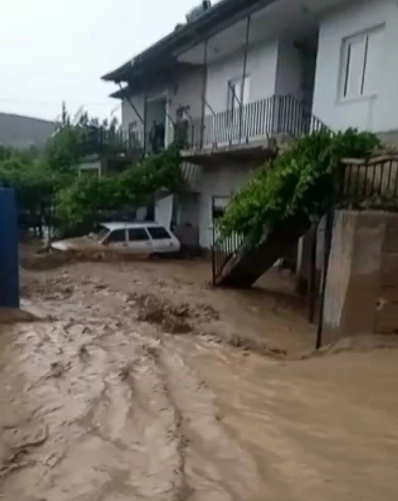 Bir vatandaşın bahçesindeki otomobil sel sularının içerisinde kaldı. Sağanağa hazırlıksız yakalanan vatandaşlar zor anlar yaşadı. Belediye ekipleri, suların tahliyesi için çalışma başlattı.