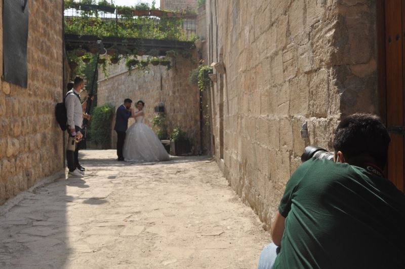Yeni normalleşme süreci kapsamında nikah kıyma kısıtlamasının kaldırılması üzerine evlilik tarihini belirleyen çiftler, açık hava müzesi olan Mardin’in tarihi sokaklarında fotoğraf çektirmek için sıraya girdi.
