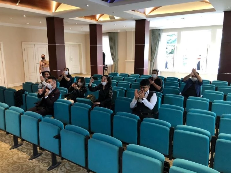 Mamak Kültür Merkezi Nikah Salonu’nda Ümmügülsüm Düşünceli ve Haydar Aslan çiftinin nikah akdini gerçekleştiren Mamak Belediyesi Evlendirme Memuru Nazife Gökçe, “Salona maskesiz kesinlikle almıyoruz. Salonumuz 100 kişilik ama sosyal mesafeyi korumak için 10 kişi misafir alıyoruz. Salonda kolonya ve mendil ikramımız oluyor. Maskesiz nikaha gelen gelin, damat ve ziyaretçiler için güvenlik arkadaşlar kapıda maske dağıtıyorlar. Herhangi bir aksilikten dolayı güvenlik arkadaşlardan maske alamazlarsa ya da nikah sırasında maske koparsa masamızda da maskemiz var hemen takviye maske yardımında bulunuyoruz” ifadelerini kullandı.