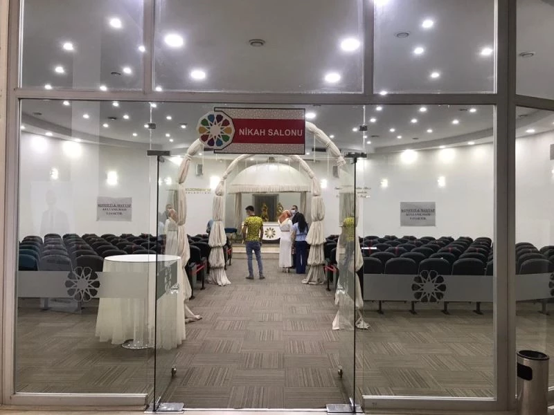 Dünyayı etkisi altına alan korona virüs salgını nedeniyle Türkiye’de alınan tedbirler kapsamında nikah salonları da kapatıldı. Normalleşme sürecinde yeniden hizmet vermeye başlayan nikah salonlarında, 3 ay ertelenen nikahlar dolayısıyla yoğunluk oluşurken, belediyeler de nikah salonlarında önlemler aldı. Nikaha gelen çiftlerle beraber sınırlı sayıda yakınları içeri alınırken, girişlerde ateş ölçümü ve dezenfekte işlemi yapılıyor.