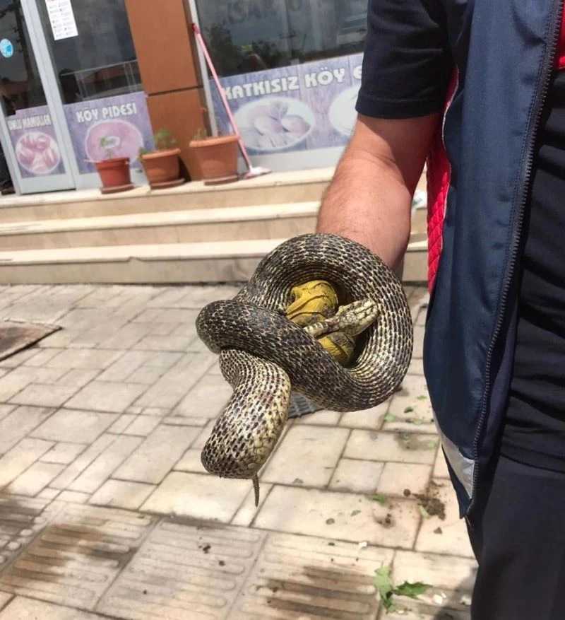 Tokat’ın Niksar ilçesinde, bir işyerinin önünde görülen yılan itfaiye ekiplerinin çalışmaları sonucu yakalanarak doğaya bırakıldı.