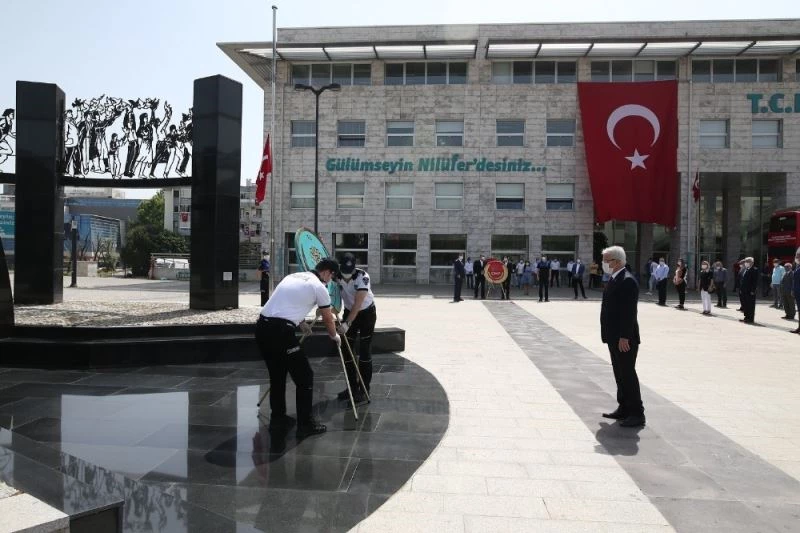 Ulu Önder Mustafa Kemal Atatürk’ün 19 Mayıs 1919’da Samsun’da başlattığı ulusal kurtuluş mücadelesinin 101. yıl dönümü, bir kez daha Türkiye’nin dört bir yanında gurur ve coşkuyla kutlandı. 19 Mayıs Atatürk’ü Anma Gençlik ve Spor Bayramı Nilüfer’de de korona virüs salgını gölgesinde ama ve her zamanki coşkuylu kutlandı. Nilüfer Cumhuriyet Meydanı’ndaki Atatürk Anıtı önünde düzenlenen çelenk koyma töreni, pandemi nedeniyle sınırlı sayıda katılımla gerçekleşti. Çelenk koyma törenine Nilüfer Belediye Başkanı Turgay Erdem, CHP Genel Başkan Yardımcıları ve Bursa Milletvekilleri Prof. Dr. Lale Karabıyık ile Orhan Sarıbal, CHP Bursa Milletvekilleri Nurhayat Altaca Kayışoğlu, Erkan Aydın, Yüksel Özkan, İYİ Parti Bursa Milletvekili Prof. Dr. İsmail Tatlıoğlu, CHP Bursa İl Başkanı İsmet Karaca, İYİ Parti Bursa İl Başkanı Yahya Bahadır ile CHP Nilüfer İlçe Başkanı Fırat Yılmaz katıldı. Maskelerle katılımın sağlandığı ve sosyal mesafenin korunduğu törende çelenk koyma töreninin ardından saygı duruşunda bulunuldu.