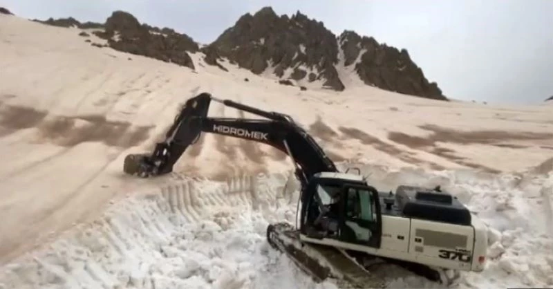 Kardan oluşan tüneller ve 9 metreyi bulan kar kalınlığı karşısında zaman zaman zor anlar yaşayan Hakkari İl Özel İdaresi ekipleri, kepçe ile açamadıkları yolda ekskavatör de kullanıyor. 4 ayrı iş makinesinin çalıştığı 3 bin 300 rakımlı yolda kar kalınlığının yer yer 9 ile 12 metreyi bulduğu belirtildi.