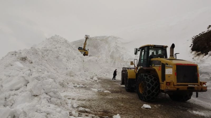 Nisan ayında karın 20 metreyi bulduğu yolda çalışma