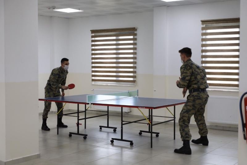 Bayram da ailelerinde uzakta geçirseler de bayramın heyecanını karargahta yaşayan Mehmetçikler, bayramlaşma töreni sonrası silah arkadaşları ile zaman geçirdi. Bu yıl hizmete gören ve Mehmetçiklerin rahatları için her ayrıntının düşünüldüğü koğuşlarının da bulunduğu hizmet bölüğünde boş zamanlarında çeşitli aktiviteler yapıyorlar.