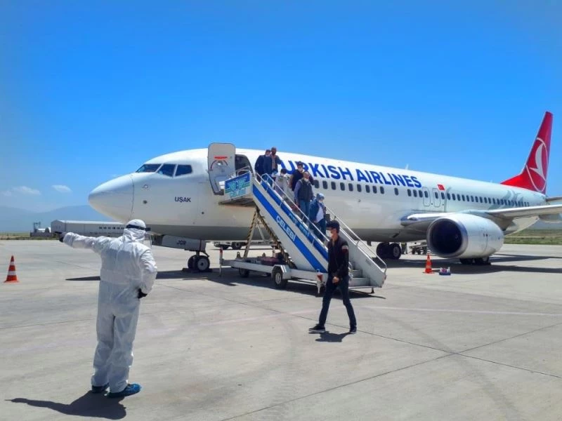 Öte yandan, görevli ekipler ve güvenlik görevlilerinin maske, eldiven ve siperlik takarak önlem aldığı havalimanında yolculara sık sık sosyal mesafe uyarıları yapıldı. İstanbul Havalimanı’ndan 158 yolcusuyla kalkan uçak, Iğdır Şehit Bülent Aydın Havalimanı’na iniş yaptı. Pistte iniş yapan uçak, havalimanı ekipleri tarafından su gösterisi töreni ile karşılandı. Iğdır’a iniş yapan uçak daha sonra 165 yolcu ile İstanbul’a uçuş gerçekleştirdi.
