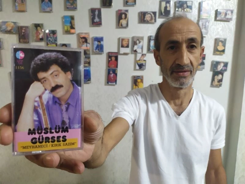 Elazığ’da çay ocağı işletmeciliği yapan Ahmet Türkgüzeli (52), 1990 yılından itibaren satın aldığı, bugünlerde bulunması zor olduğu için nostaljik bir anı olarak kalan sanatçıların kasetlerini iş yerinde duvara asarak sergiliyor.
