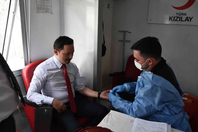 Mardin’in Nusaybin ilçe Kaymakamı ve Belediye Başkan Vekili Ercan Kayabaşı ile Cumhuriyet Başsavcısı Hami Can, Kızılay’ın standına gelerek kan bağışında bulundu.
