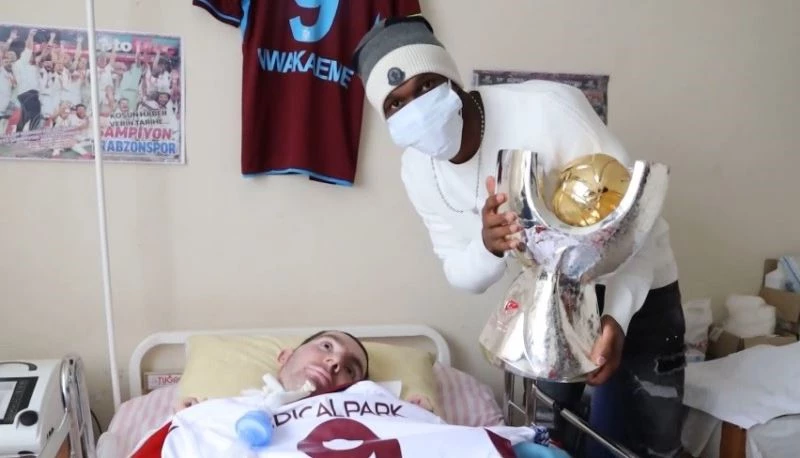 Trabzonspor’un yıldız oyuncusu Nwakaeme, küçük yaşlarda geçirdiği rahatsızlık sonucu kısmi beyin felci geçiren, 3 yıldır da yatağa bağlı halde hayata tutunmaya çalışan ve sadece kendisinin yer aldığı videolara tepki veren Yusuf Şentürk’ü ziyaret etti.