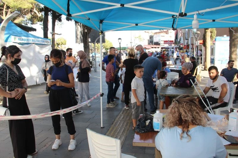 Alaşehir İlçe Sağlık Müdürlüğü tarafından kurulan aşı çadırında görevli Dr. Berkay Eren, “Aşı çadırında randevusuz bir şekilde aşı yapıyoruz. Belediyenin de kampanyası var. İlk doz aşısını olanlara akıllı telefon, bisiklet ve akıllı saat hediyeleri var. Bu da bizim sayılarımızı arttırdı. Her gün 200-250 civarında aşılama yapıyoruz. Birinci doz aşı olanları sayısı dün artmaya başladı, belediyenin kampanyasıyla birlikte birinci doz aşısını olanların sayısı günlük 100’ü buluyor” diye konuştu.