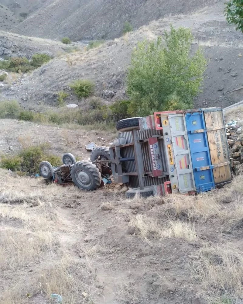 Elazığ’da odun yüklü traktör, freninin boşalması sonucu kontrolden çıkarak uçuruma yuvarlandı. Kazada sürücü son anda traktörden atlayarak kurtuldu.