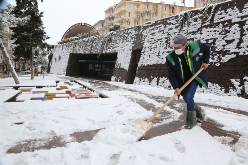 Odunpazarı Belediyesi’nin karla mücadele ekipleri aniden bastıran kar yağışının ardından çalışmalarını aralıksız sürdürüyor.