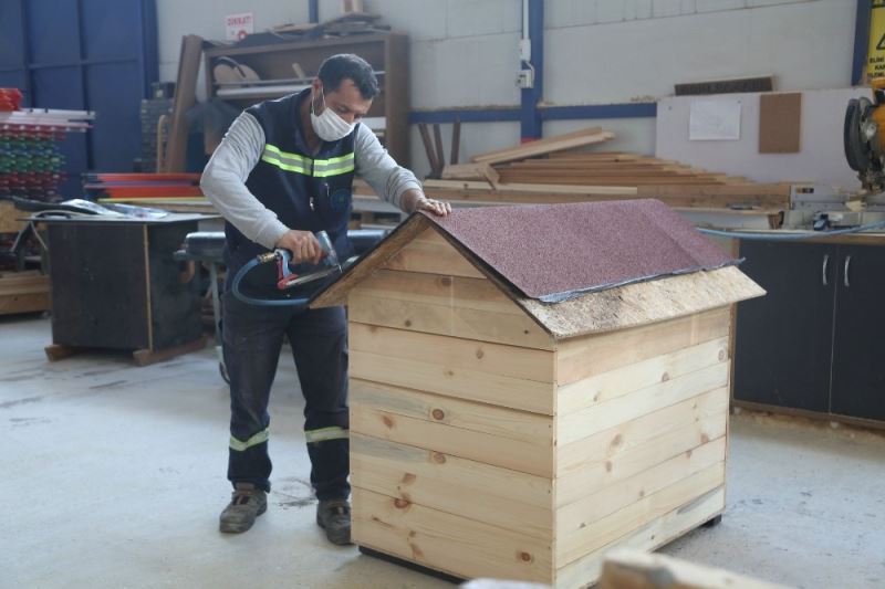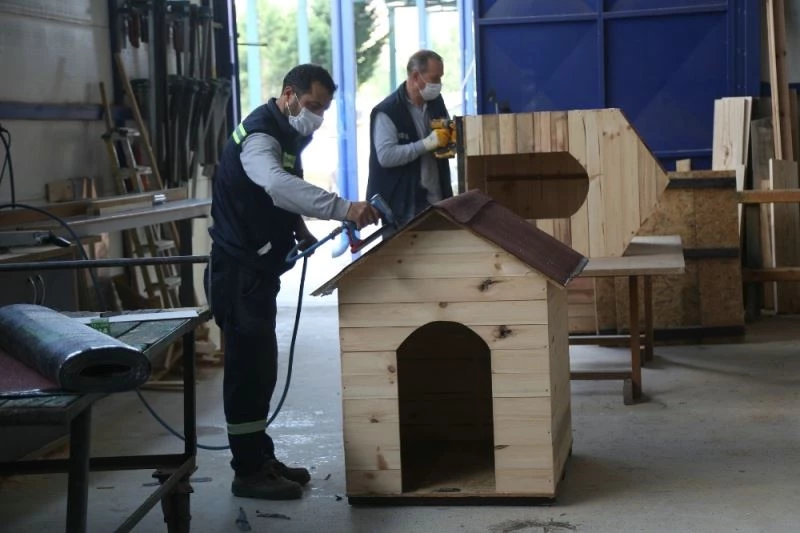 Eskişehir’de Odunpazarı Belediyesi’ne bağlı Park ve Bahçeler Müdürlüğü, sokakta yaşayan sevimli patiler için kedi evi ve köpek kulübesi yapıyor.