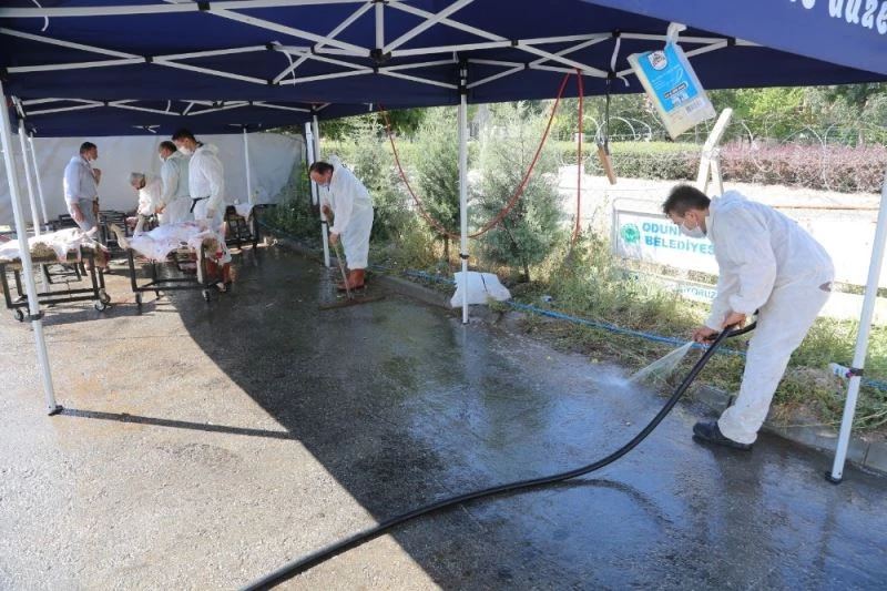 Vatandaşların kurban kesim sorunu yaşamaması, çevrede kötü görüntü ve kokularım oluşmaması, kimsenin rahatsızlık duymaması için Odunpazarı Belediyesi tarafından Fen İşleri Şantiyesi’nde kurban kesimi için özel bir alan oluşturuldu. Vatandaşlar bu bayramda da kurbanlarını kesebilmek için Odunpazarı Belediyesi Fen İşleri Şantiyesinde yer alan kurban kesim yerlerini seçti.
