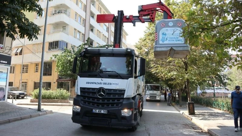Bir yandan mahallelerde temizlik çalışması yapan ekipler diğer taraftan da yer üstü çöp konteynerlerini yeniliyor. Çöp konteynerlerini yenileri ile değiştiren ekipler, vatandaşlardan çöp çıkarma saatlerine riayet etmelerini istedi.