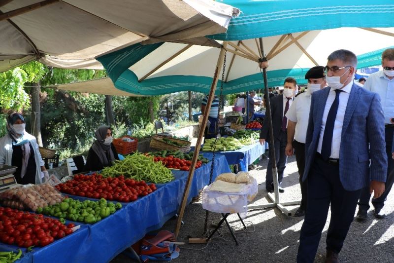 İlk olarak semt pazarını gezen Vali Gürel, pazarcı esnafı ve vatandaşları sosyal mesafe ile maske takmaları konusunda uyarıda bulundu. Bazı pazarcı esnafları Gürel’e istek ve şikayetlerini ileterek, denetimlerden memnun olduklarını belirtti.