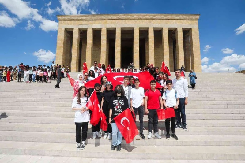 Öğretmenleri eşliğinde ilk olarak Aslanlı Yol’dan geçen 50 öğrenci, ellerinde Türk Bayrakları ile Anıtkabir’i karış karış gezerek Ata’nın huzuruna çıkmanın mutluluğunu yaşadı.