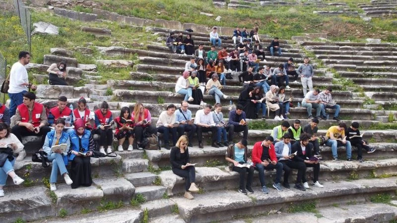 Aydın’da İl Kültür Müdürlüğü öncülüğünde farklı bir kitap okuma etkinliği düzenlendi. İzmir’in Selçuk ilçesinde bulunan Efes Antik kenti ile birlikte Anadolu’da ayakta kalmış en iyi 2 kütüphaneden birine ev sahipliği yapan Aydın Sultanhisar’daki Nysa Antik Kenti, kitap kurtlarını ağırladı. Önce antik kenti rehberler eşliğinde gezerek kent hakkında ve kentteki antik kütüphane hakkında bilgiler alan öğrenciler daha sonra antik kentin en önemli yeri olan Anfi Tiyatro’da hep birlikte kitap okudu. Yaklaşık 45 dakika süren kitap okuma etkinliği havanın da güzel olması ile birlikte renkli görüntülere sahne oldu.