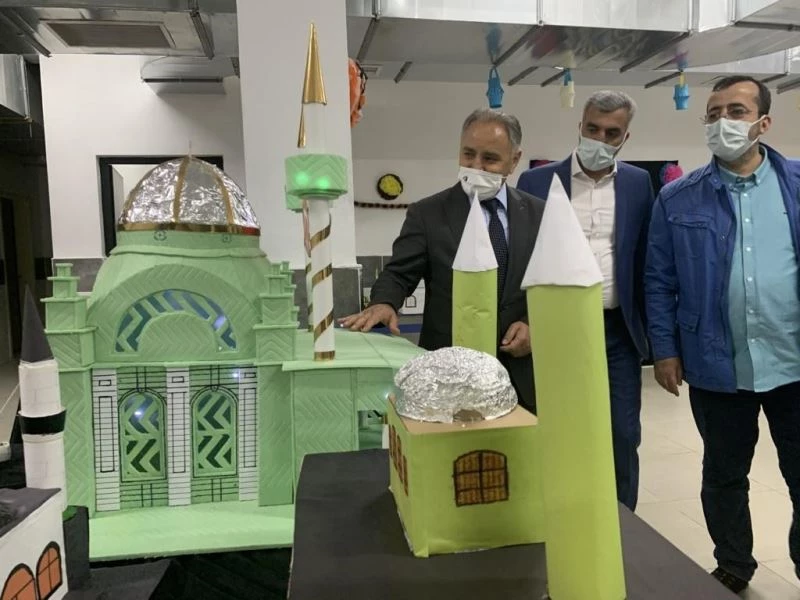 Atık malzemelerden hazırlanan birbirinden güzel eserlerin sergilendiği sergi alanını gezen ve eserler hakkında bilgi alan İl Milli Eğitim Müdürü Feyzi Gürtürk, hazırlanan serginin tamamen çocukların el emeği olduğunu belirterek;"İslami eserleri tasvir eden çocuklarımıza değerler eğitimi kapsamında bu çalışmayı yaptıran öğretmenimizi ve okul yöneticilerimizi de kutluyorum. Gerçekten birbirinden güzel ve anlamlı eserler ortaya çıkarılmış. Üstelik eserlerin hepsinde atık malzeme kullanılarak daha anlamlı bir işe imza atılmış” dedi.